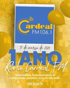 Há exatos um ano, em 15 de março de 2024, a Arquidiocese de São Salvador da Bahia, através da Fundação Dom Avelar Brandão Vilela e Rede Excelsior de Comunicação oficializou o lançamento da Rádio Cardeal FM 106.1. O evento de lançamento da emissora reuniu as principais agências de comunicação da cidade, além de representantes de órgãos governamentais, autoridades eclesiais e líderes de instituições da sociedade civil e privada. Em vídeo veiculado no lançamento da Cardeal FM, o governador do Estado da Bahia, Jerônimo Rodrigues destacou que “é fundamental fortalecer canais que ajudem a gente a difundir a fé”.
